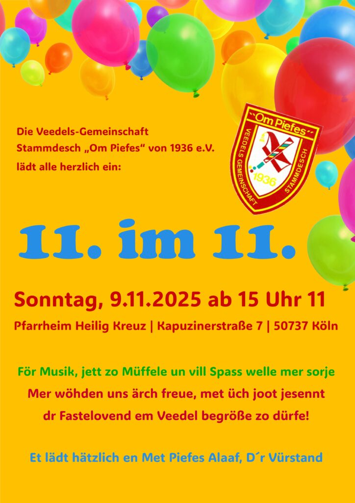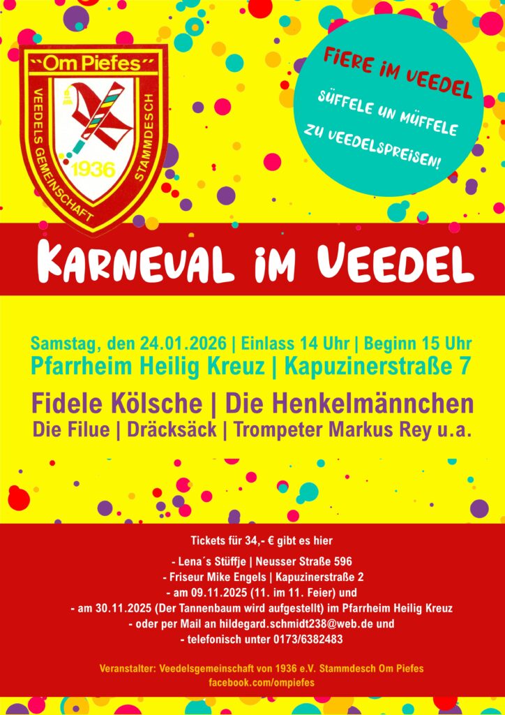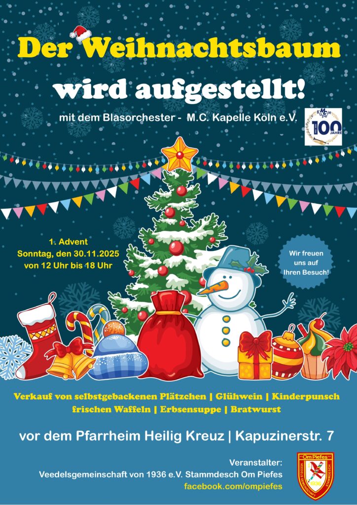 – bei unseren Veranstaltungen 11. im 11. Feier des Stammdesch Om Piefes und Der Tannenbaum wird aufgestellt im Pfarrheim Heilig Kreuz