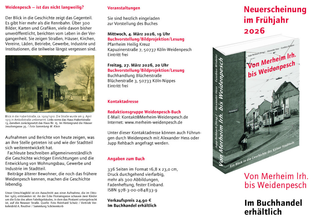 „Von Merheim lrh. nach Weidenpesch — ein Blick in die Geschichte des Kölner Stadtteils“ von Jupp Rehbach (Hrsg.), Alexander Hess und Eusebius Wirdeier